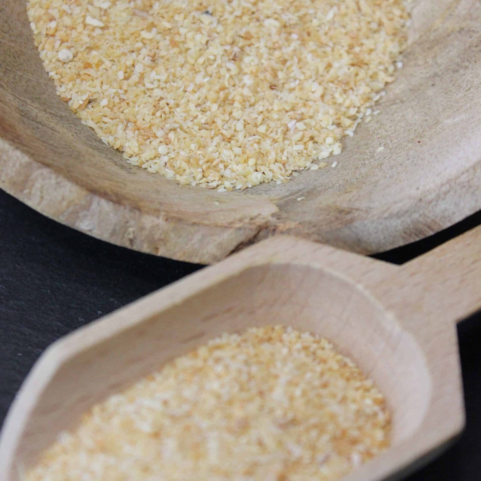 Pour un goût encore plus intense, pensez à torréfier légèrement votre Ail semoule bio à la poêle avant de l’utiliser.