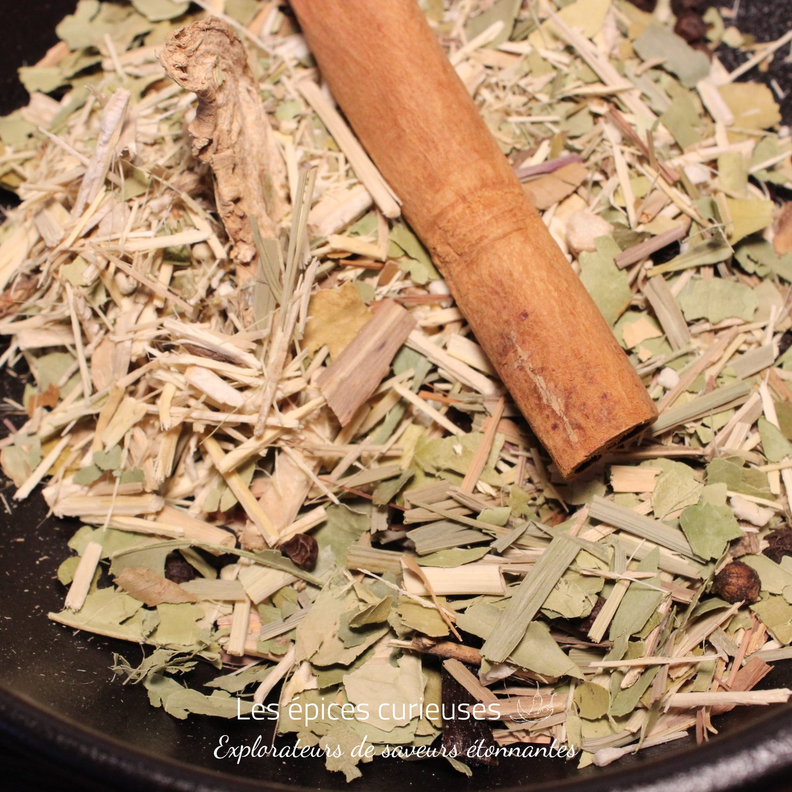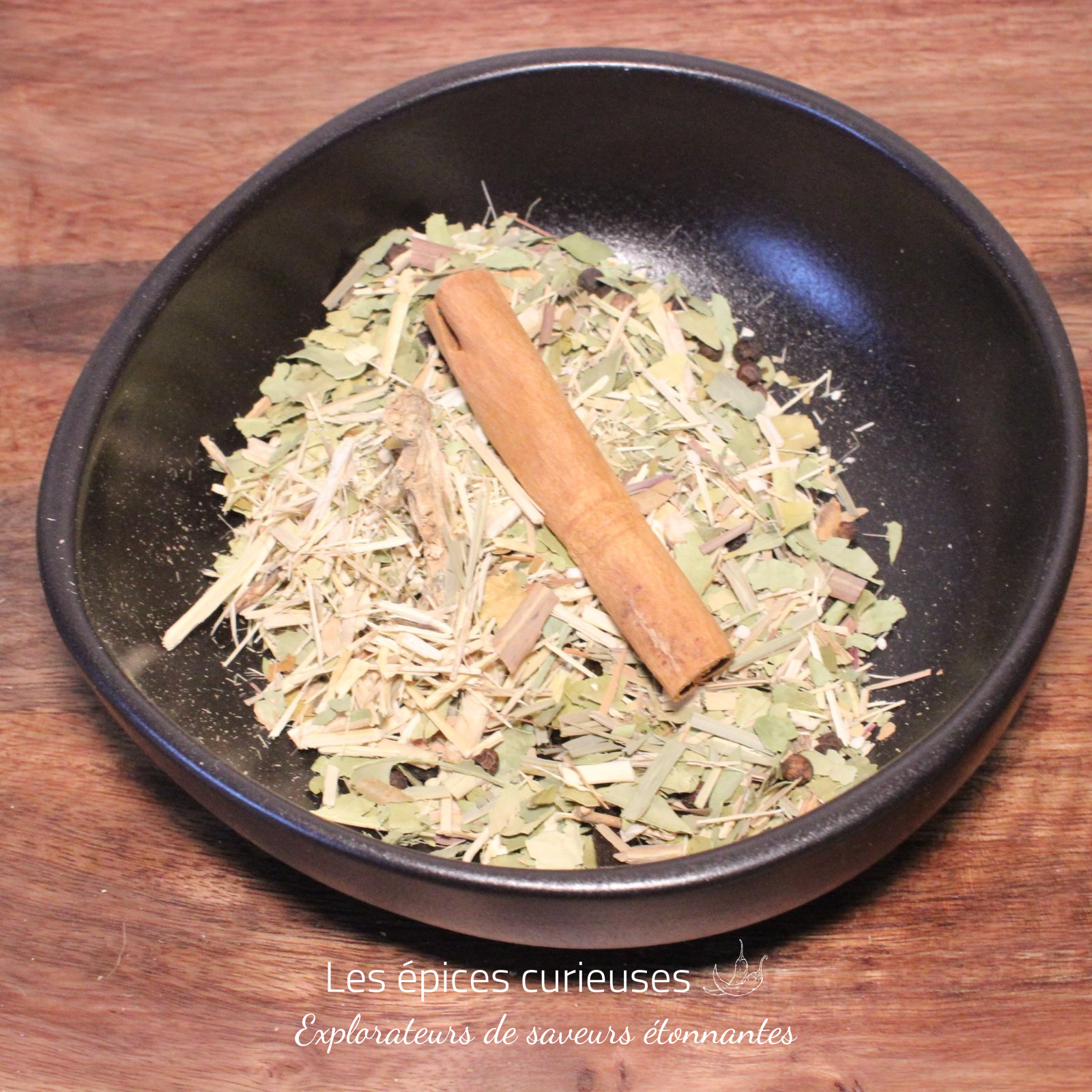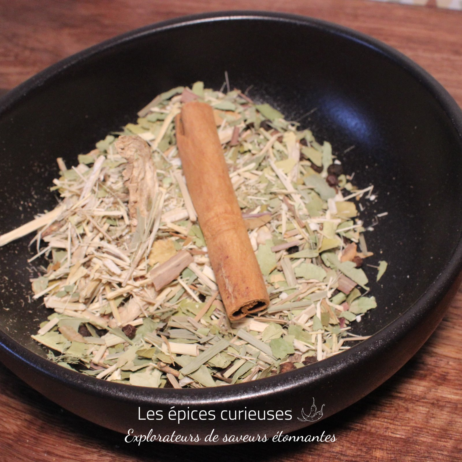 Composition : Éleuthérocoque racine, citronnelle tige, gingembre racine, cannelle bâton, vanille rouge, poivre noir, feuilles d’oranger bigaradier.