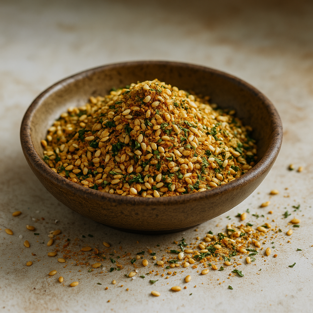 – Signature aromatique : Le Gomasio aux épices dégage un bouquet aromatique unique, avec une dominante de sésame et d’herbes, relevée par une pointe de paprika.