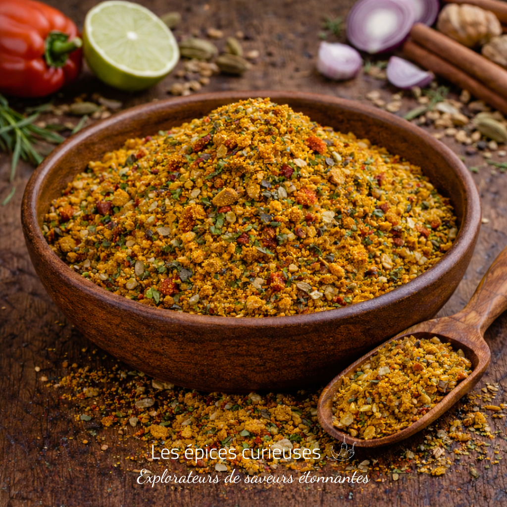- Signature aromatique : Un mélange harmonieux d’épices, avec des notes dominantes de cumin, de coriandre et de curcuma, sublimées par une pointe de citron vert.