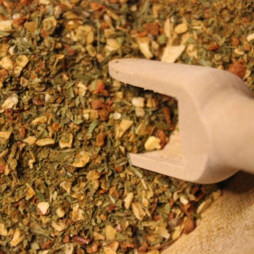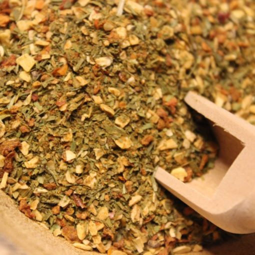 L’Assemblage Pot-au-feu des Épices Curieuses est une combinaison harmonieuse d’oignons, de poivrons, d’ail, de tomates, de ciboulette, de persil, de fleur de sel, de livèche, d’aneth et de poivre noir. Cet assemblage unique offre une saveur riche et robuste, une texture variée, et une couleur engageante, qui évoque le terroir authentique dont il est issu.