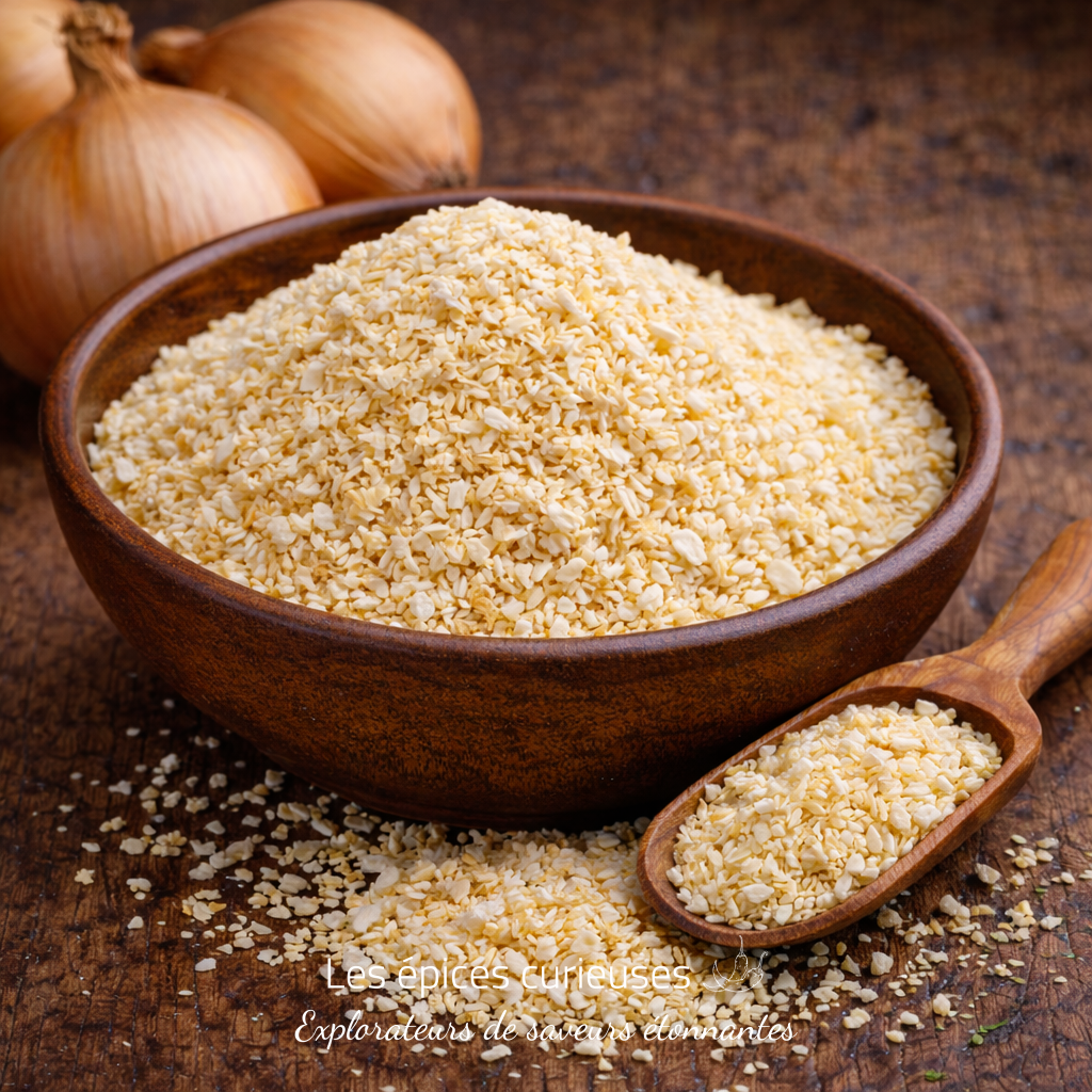 L’Oignon semoule des Épices Curieuses est composé à 100% d’oignon, sans aucun ajout. Un produit pur, authentique et naturel.