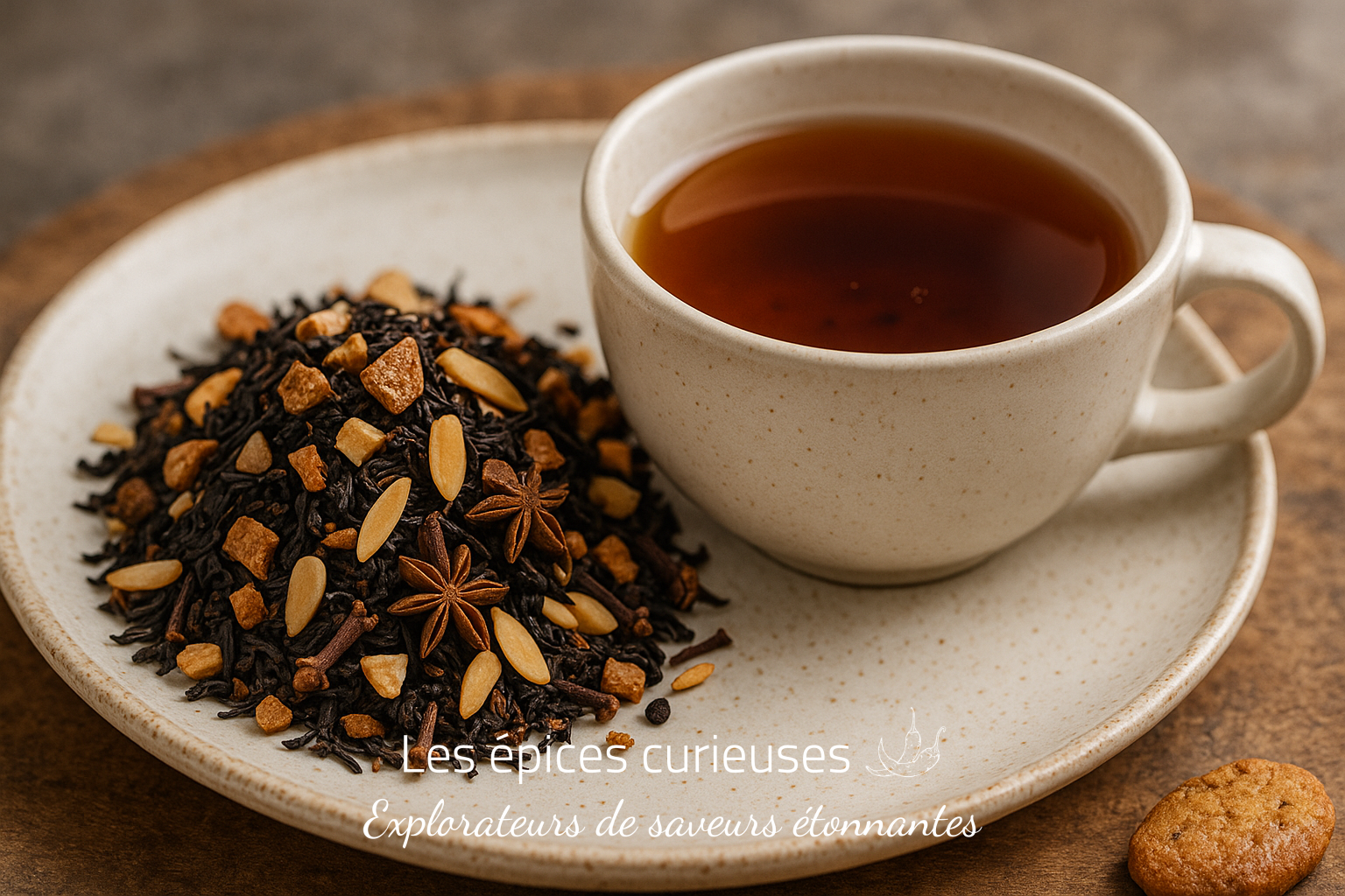 Découvrez Une p’tite Veillée Gourmande, une sélection raffinée de thés noirs de Ceylan et d’Assam, sublimée par des notes fruitées et épicées. Cette composition originale des Épices Curieuses est une invitation à un voyage sensoriel aux confins de l’Inde et du Sri Lanka. Elle vous transporte dans un univers chaleureux et réconfortant, au cœur d’une veillée gourmande, où les saveurs se mêlent dans une danse harmonieuse de goûts. De délicats morceaux de pomme, des zestes d’orange parfumés, des clous de girofle épicés et de l’anis étoilé composent ce tableau gustatif, orchestré par une note d’amande douce.